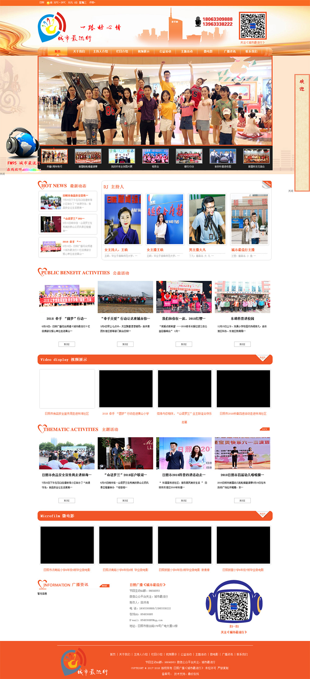 • 2015年8月19日,注定是一個(gè)不平凡的日子,日照廣播FM95 AM1449【城市最流行】經(jīng)過緊張的籌備正式開播了。【城市最流行】從策劃到開播,得到了許多朋友的幫助與支持,這一路走來,有辛苦也有快樂,有激動(dòng)也有忐忑。我們相信有付出就一定會(huì)有收獲,我們有信心能夠做得更好,走得更遠(yuǎn)。 【城市最流行】自開播以來堅(jiān)持市場化運(yùn)營模式,以品質(zhì)贏得大眾,以服務(wù)占據(jù)市場。線上提升節(jié)目品質(zhì),線下活動(dòng)支撐節(jié)目,同時(shí)完善節(jié)目公眾號服務(wù)內(nèi)容,搭載電子商務(wù)購物平臺(tái),足不出戶體驗(yàn)購物樂趣,打造時(shí)尚潮流娛樂新風(fēng)尚。節(jié)目的收聽率及影