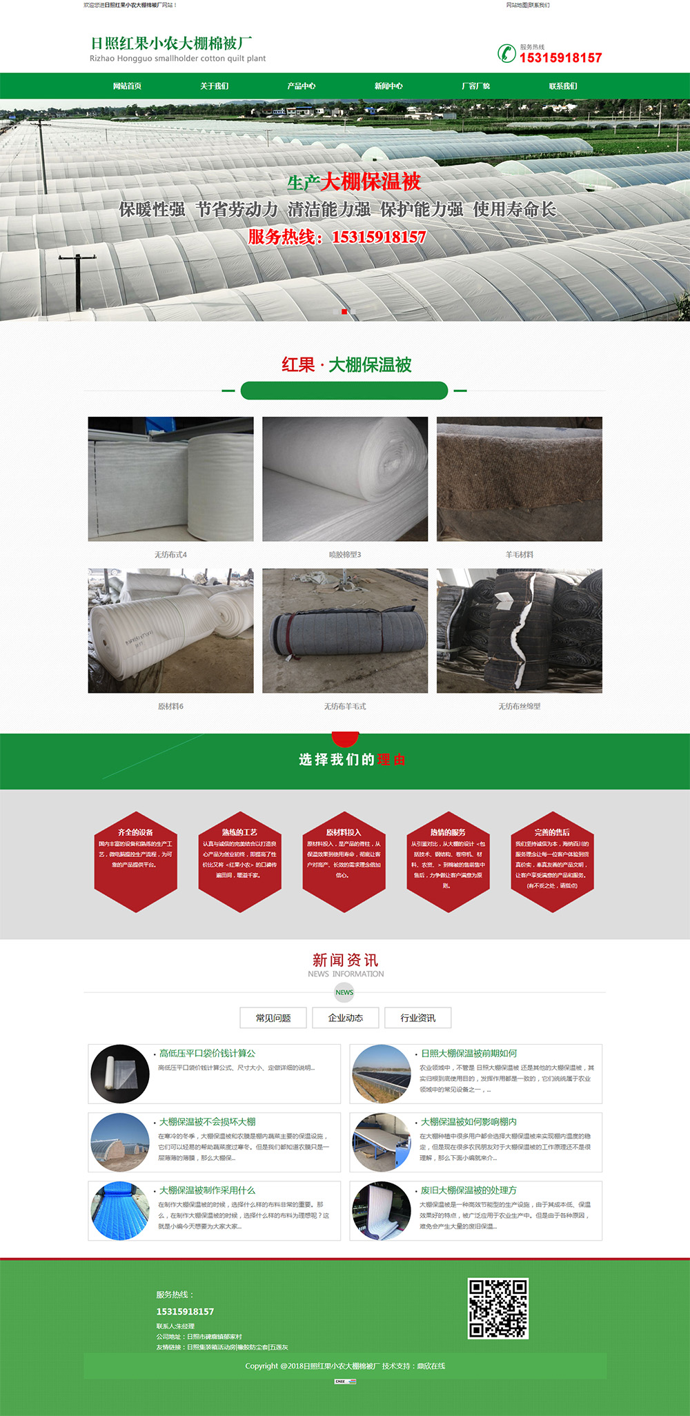 山東省日照市紅果小農(nóng)大棚棉被廠,開發(fā)于三農(nóng)一線,以市場需要為創(chuàng)業(yè)理念,借鑒于蔬菜之鄉(xiāng)壽光等地之三農(nóng)高科和省市級勞模以及各工業(yè)區(qū)精英,學(xué)習(xí)人之長,改善己之短,抱著長遠(yuǎn)心態(tài)與全體工作人員一體合力,不斷升華產(chǎn)品質(zhì)量。讓客戶滿意才能實現(xiàn)我們的創(chuàng)造價值,才能在同行業(yè)具備競爭力,并加以完善售后服務(wù),讓客戶無后顧之憂。