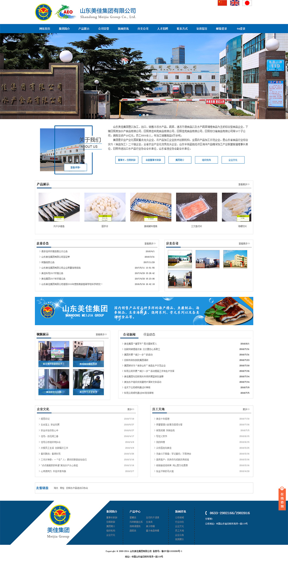 • 山東美佳集團(tuán)是以加工、出口、銷售冷凍水產(chǎn)品、蔬菜、速凍方便食品以及水產(chǎn)蔬菜調(diào) 理食品為主的綜合型食品企業(yè),下轄日照美加水產(chǎn)食品有限公司、日照美佳科苑食品有限公司、日照佳苑食品有限公司、日照好口福食品有限公司等12個子公司。擁 有總資產(chǎn)10億元,員工5500余人,年加工銷售制品5萬余噸。 公司產(chǎn)品主要包括冷凍、鹽漬、生食、蒸煮、燒烤、調(diào) 理食品等400多個品種,主要銷往日本、韓國、歐美、俄羅斯、東南亞等國家和地區(qū)。國 內(nèi)銷售產(chǎn)品有品種多樣的海產(chǎn)精 品、魚糜制品、海參制品、生食海鮮類、燒烤系列、骨無系列以及